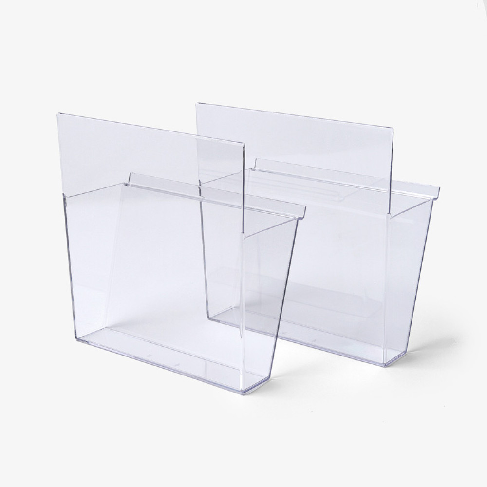Akrylowe kieszenie (transpoarentna) w formacie A2 (2 sztuki), którą można zastosować do stojaków Torre, Trys, BRT oraz BRW Twarde, zupełnie przezroczyste tworzywo, doskonale zaprezentuje włożone do środka materiały i nie zasłoni żadnej treści. Kieszeń jest tak skonstruowana, że umieszczone w środku ulotki są delikatnie pochylone do przodu - co umożliwia wygodnie ich wyciąganie.